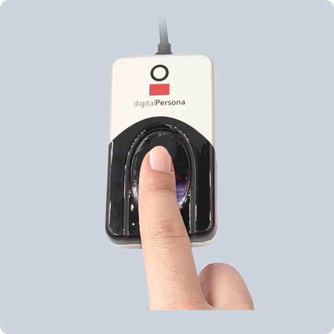 Los lectores de DigitalPersona utilizan tecnología óptica de escaneado de huellas digitales para obtener una excelente calidad de la imagen, un área de captura amplia y un alto rendimiento.